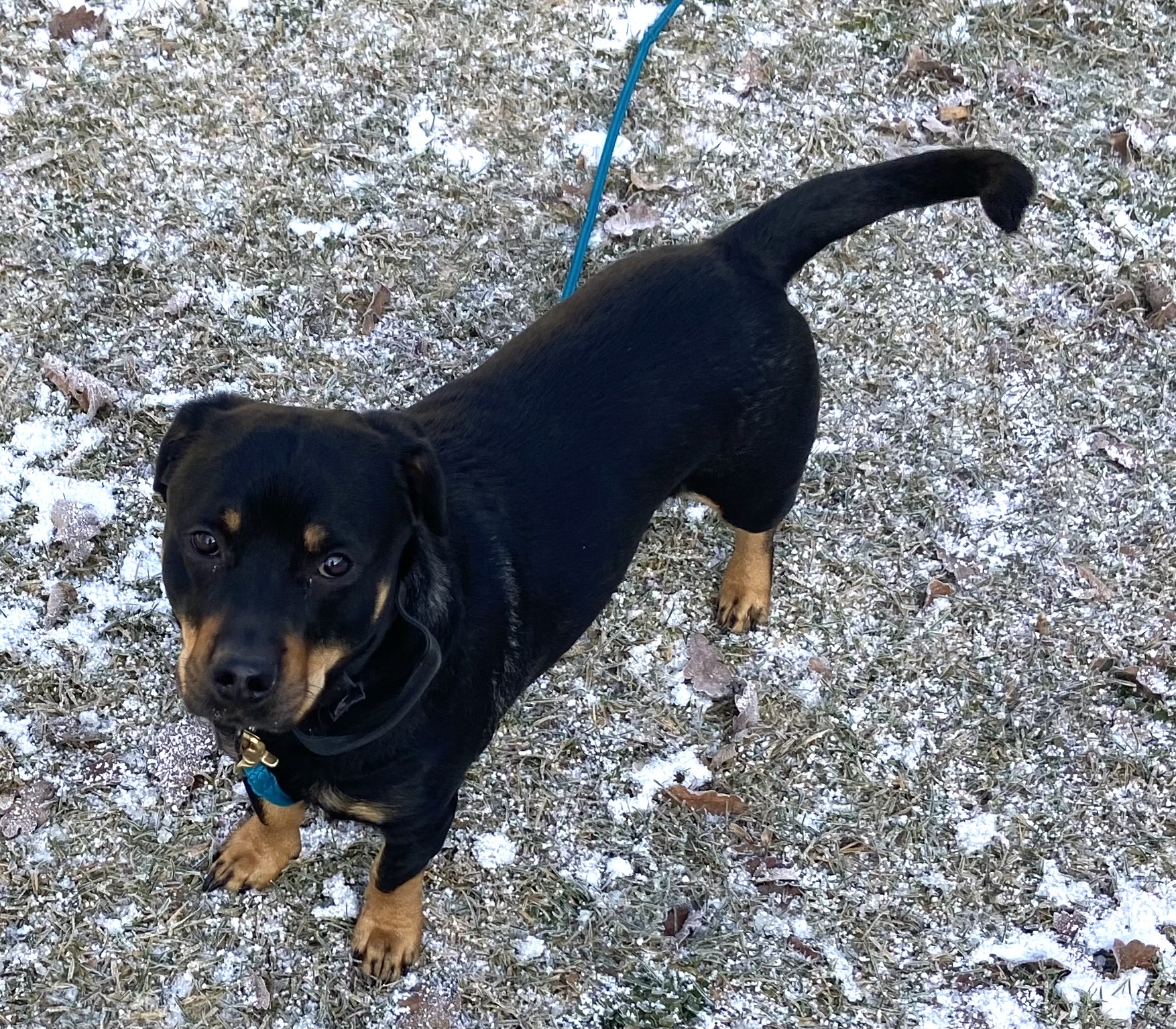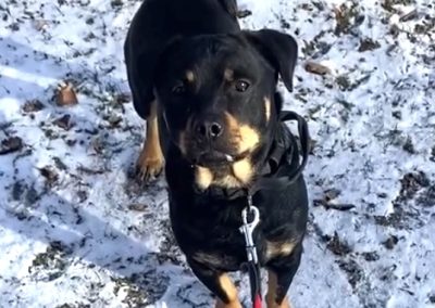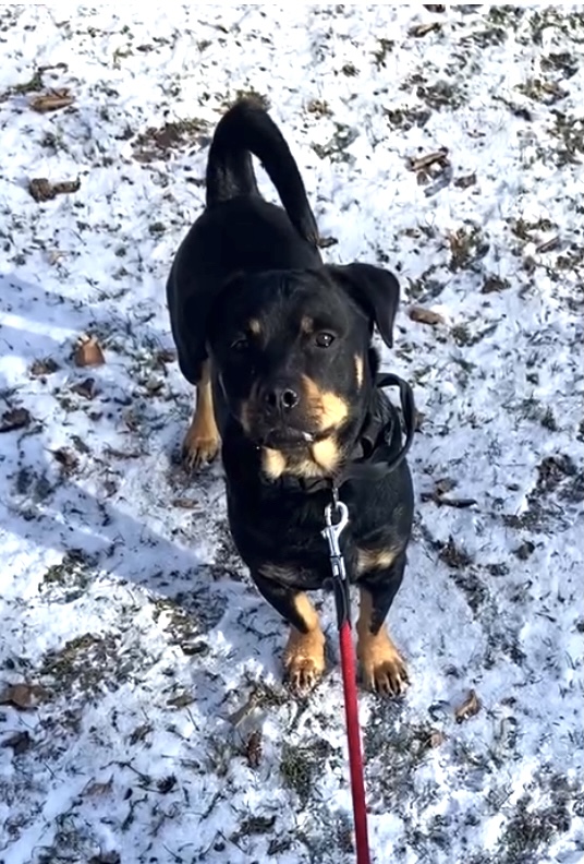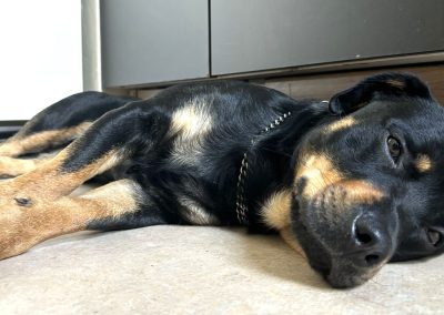 Beim Gassigehen zieht er noch an der Leine und ist sehr an der Umwelt interessiert. Bisweilen reagiert er hier noch unsicher auf überraschend auftauchende Reize. Mit Futterbelohnungen arbeiten wir hier daran, dass er sich mehr auf den Hundeführer focussiert und versuchen ihm mehr Sicherheit zu vermitteln. In gewohnter Umgebung zeigt sich Diego mittlerweile sehr lustig und auch verspielt.