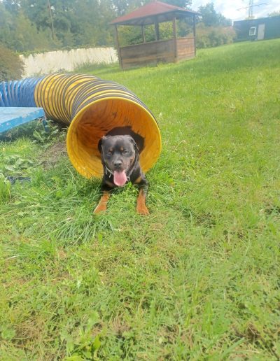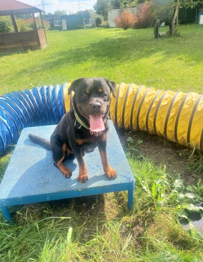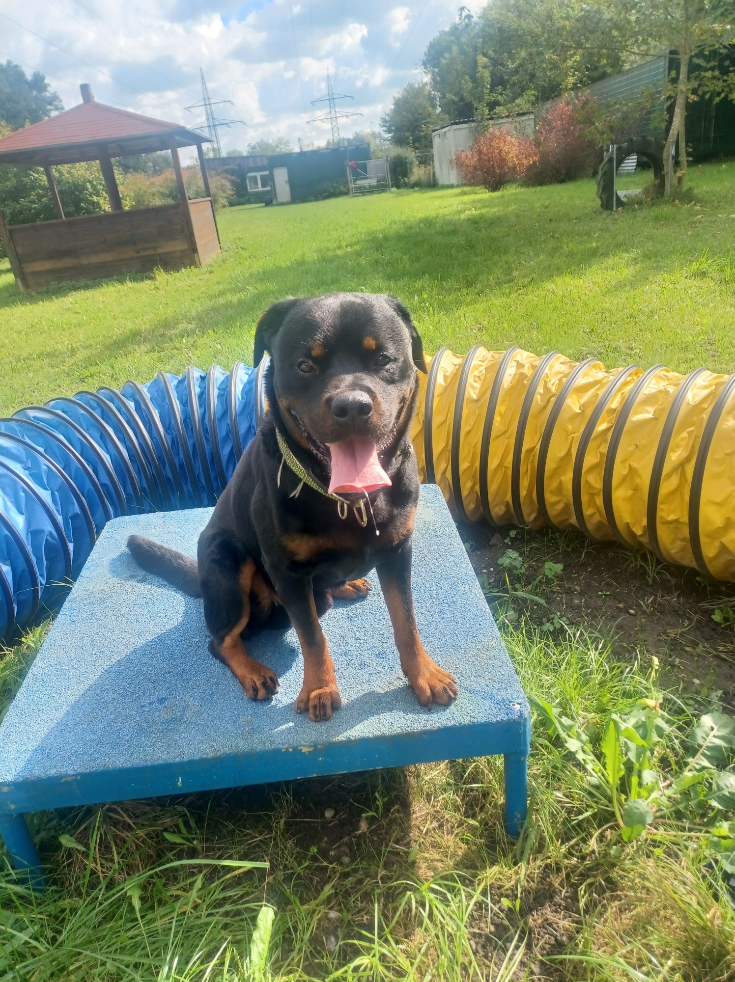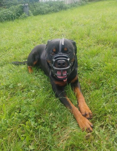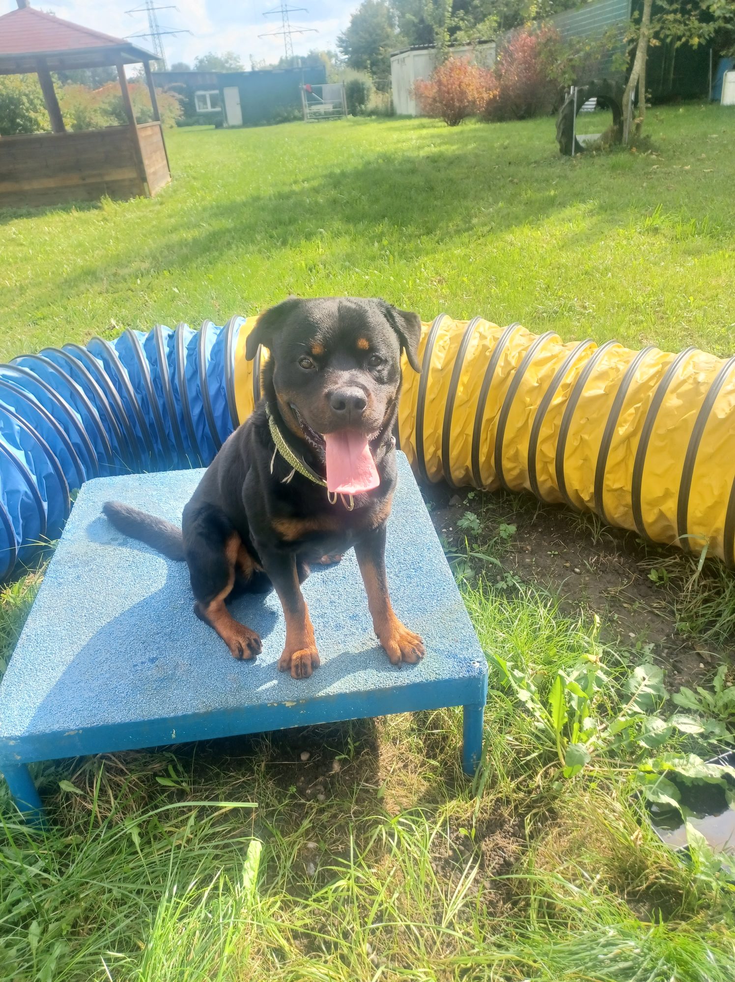 Mit Charly wird derzeit sehr intensiv am Vertrauensaufbau trainiert und mit der Maulkorbgewöhnung wurde begonnen, hier sind erfreulicherweise erste Fortschritte zu erkennen.