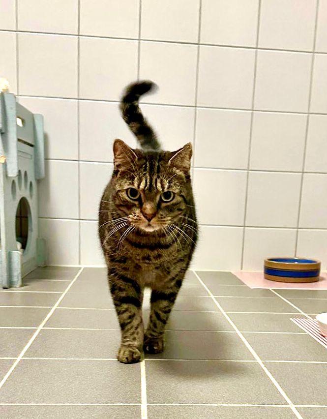 Nero (getigert) ist verschmust, neigt jedoch ein bisschen zu Übergewicht (er isst einfach
