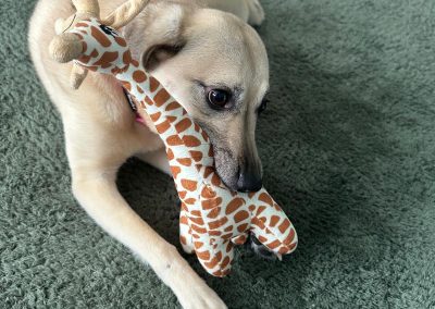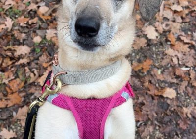 Sie lernt allerdings sehr schnell und lässt sich gut über „Leckerlis“ motivieren. Bei vertrauten Menschen, die auch Ruhe ausstrahlen, meistert Nala auch für sie schwierige Situationen immer besser.